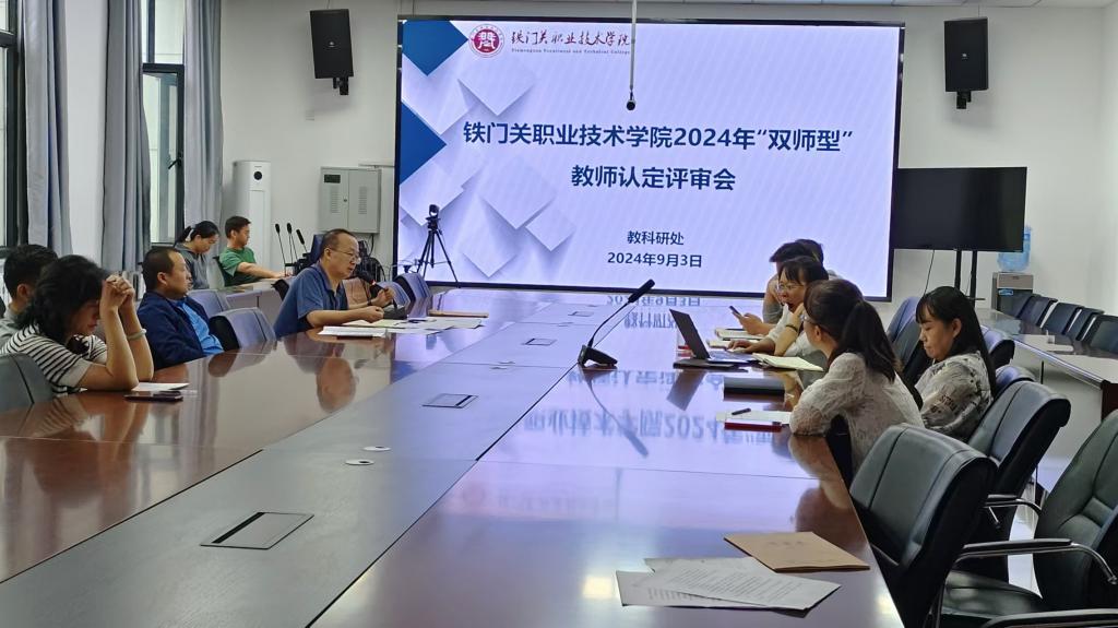 sunbet申搏官方网站有序推进并圆满完成“双师型”教师评审认定工作。8月底以来,学院教科研处牵头,组织开展“双师型”教师评审认定工作,经各二级学院教师提交申报表及相关材料,9月3日,在铁门关校区燕赵楼召开了2024年“双师型“教师认定评审会,处室及二级学院评审专家参加评审会议