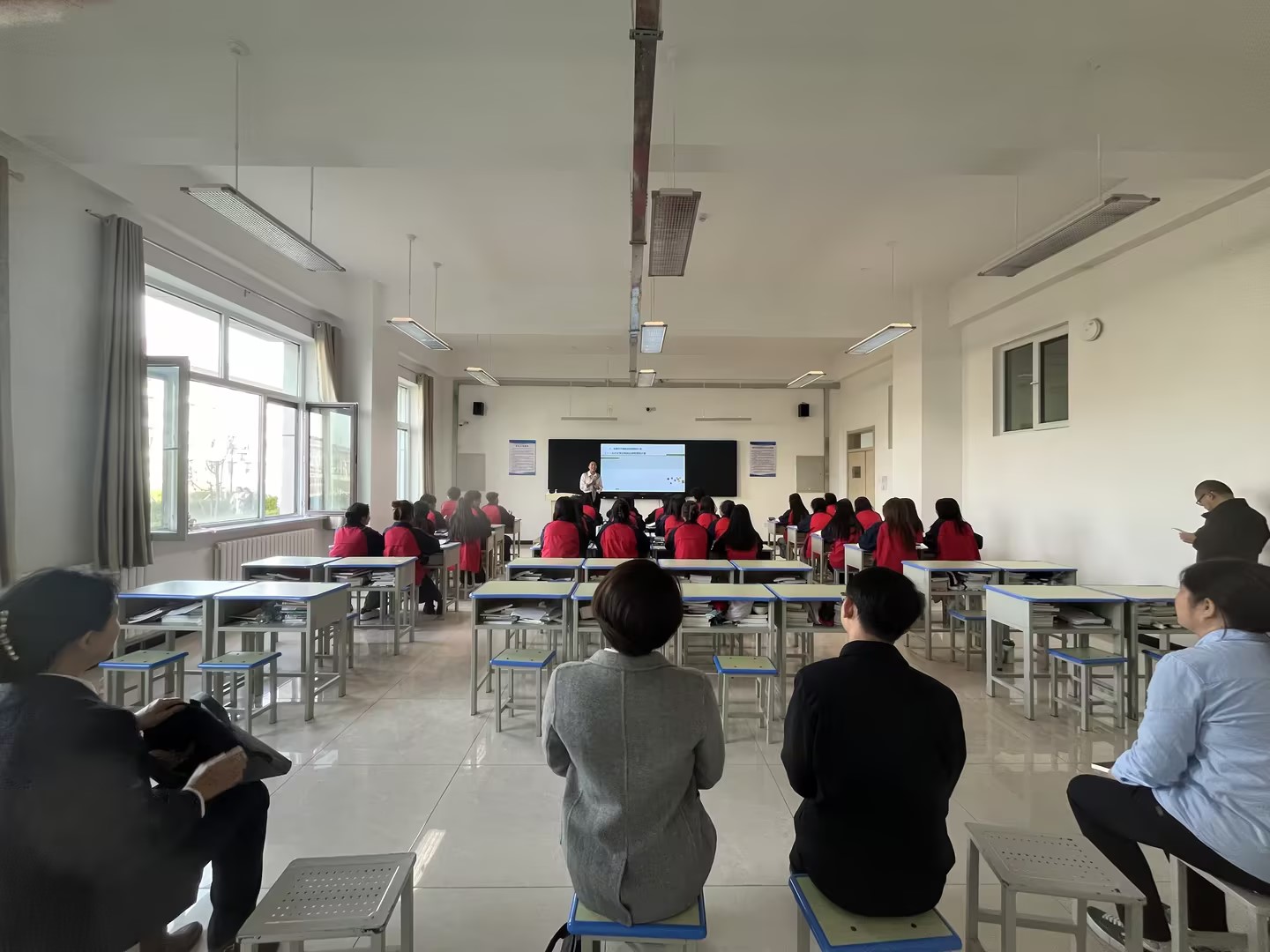 座谈会后,一行人随机听取该院教师课程思政示范课程,并在曾晓峰的带领下,参观了兴新职业技术学院校史馆,期间,双方围绕该院课程思政的专业特色、实践教学、建设方式和融入机制等问题展开了热烈深入的讨论。