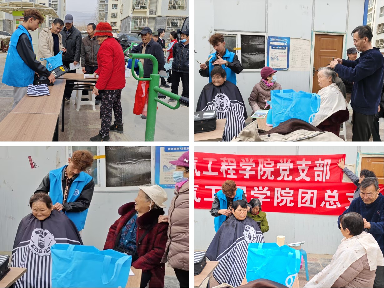 学生工作党支部发挥党员教师与学生志愿者的服务特长,在社区广场设立“学雷锋·义务理发”便民服务点,和社区退休党员一起,为居民提供义务理发服务。理发师耐心询问居民需求,细致修剪发型,短短1个半小时内,为10余位中老年居民完成理发服务。