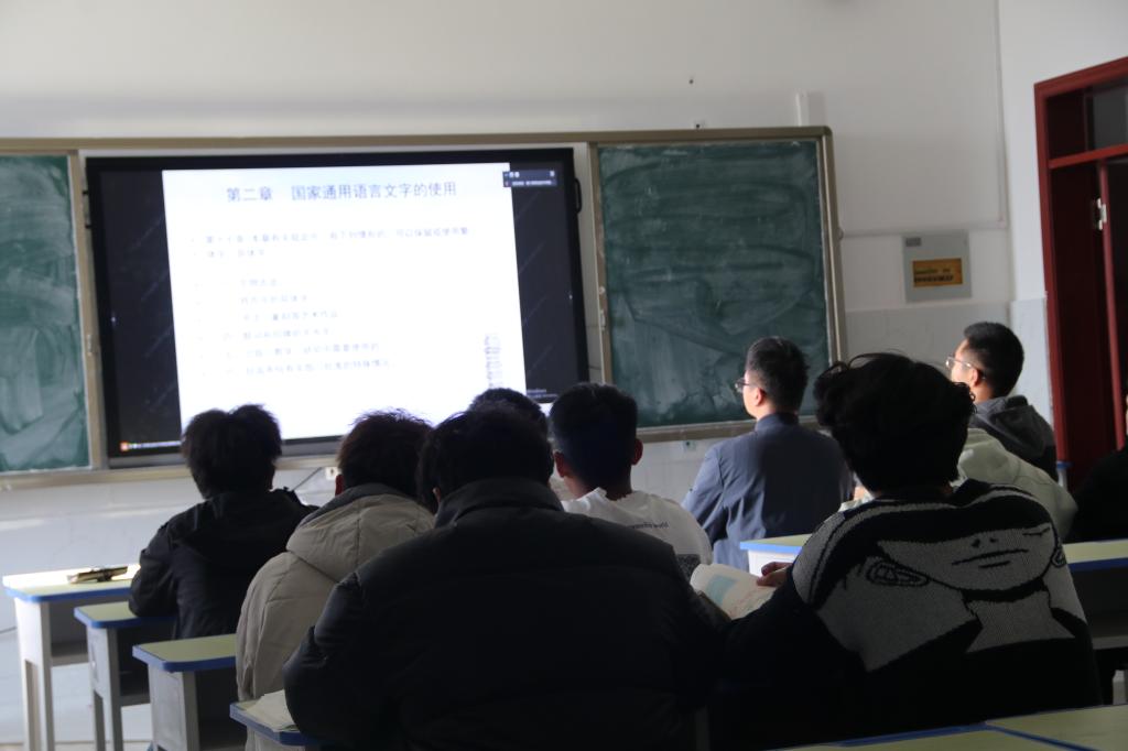 在主题班会上,全院各班级班主任分别对《中华人民共和国国家通用语言文字法》进行了深入解读,进一步提高学生对推广普及国家通用语言文字的重要性和必要性的认识,使大家认识到使用国家通用语言文字对铸牢中华民族共同体意识的重要意义,要求所有学生要从点滴小事做起,提升规范使用国家通用语言文字的意识和水平,营造“说普通话、写规范字”的良好氛围。