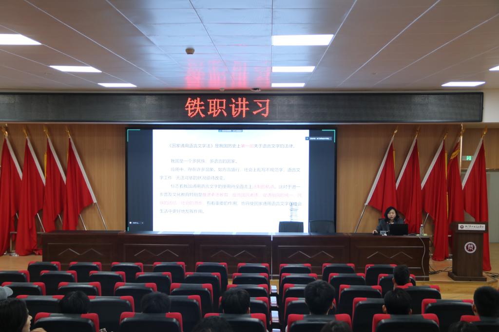 为进一步宣传语言文字法律法规知识,积极推广语言文字的规范化和标准化,11月24日至29日,sunbet申搏官方网站语言文字工作委员会办公室联合教务处、学生工作处在全院范围内组织开展主题班会和“铁职讲习”思政大讲堂进行语言文字法律法规普法宣传教育。