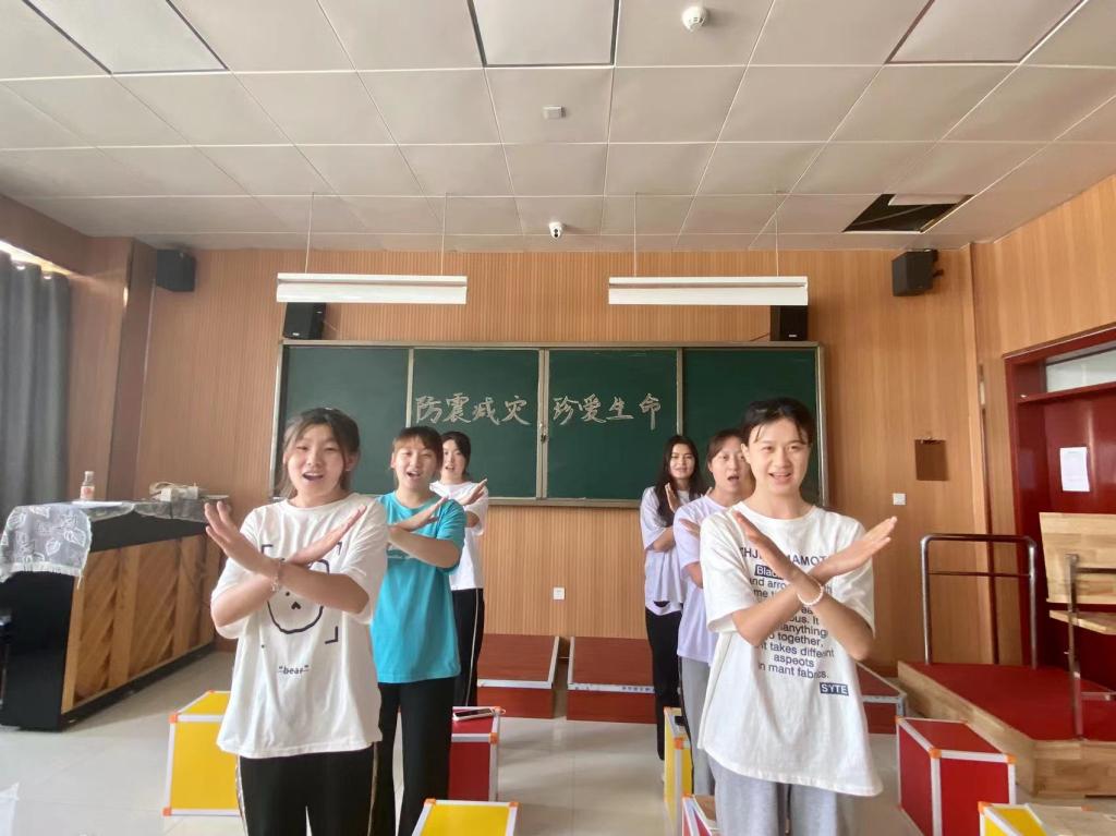 教唱过程中,声乐教师首先播放《地震安全歌》的伴奏及律动视频,组织学生在小组合作中学唱歌曲旋律,并加入各小组创编的动作,师生积极配合、相互学习,热情高涨。