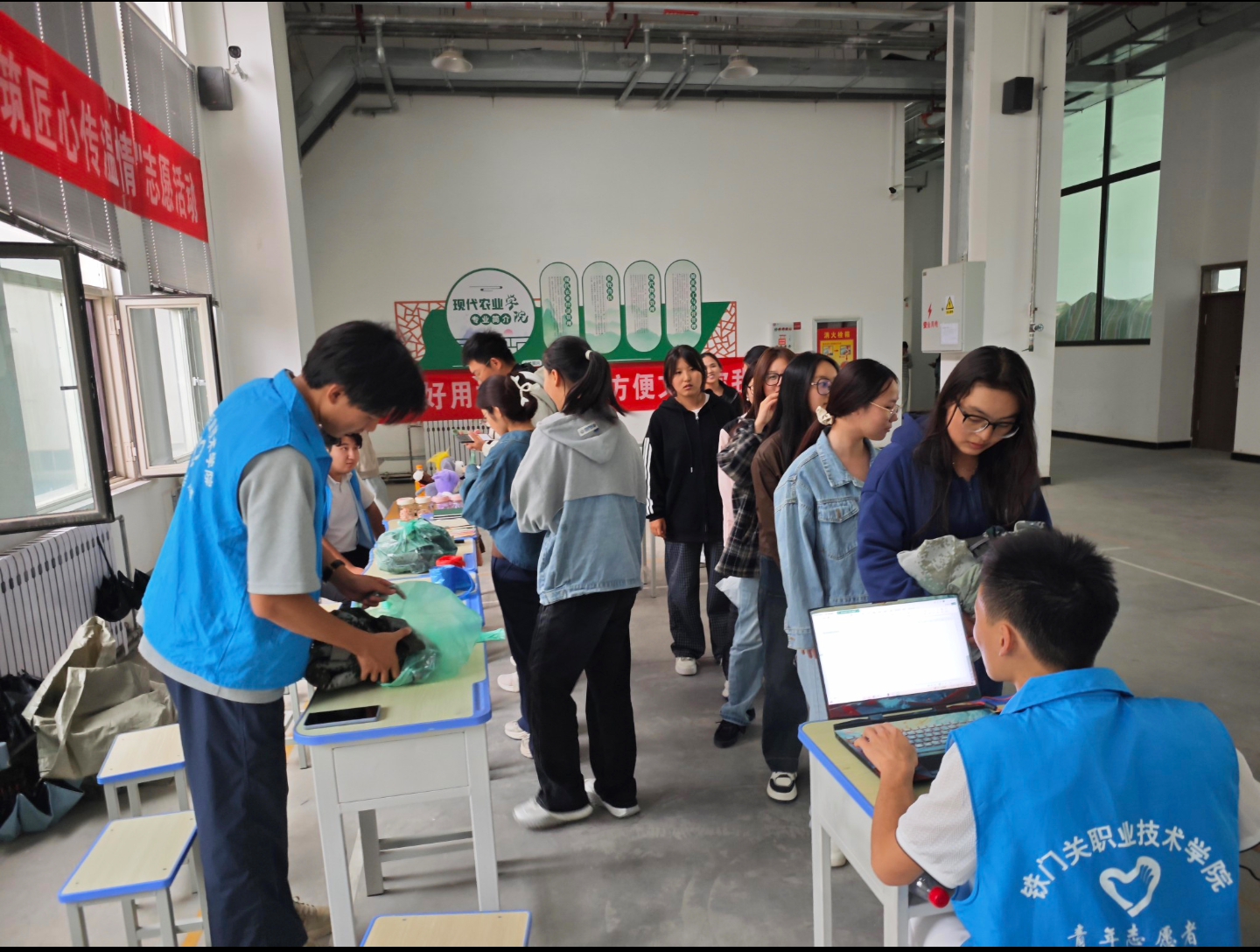 活动当天,师生踊跃参与,捐赠闲置迷彩服共计150余件。现场气氛温馨,流程顺畅。志愿者认真做好衣物清点、登记整理工作,并设置抽奖环节,增强活动互动性与趣味性,营造了积极参与、快乐公益的良好氛围。