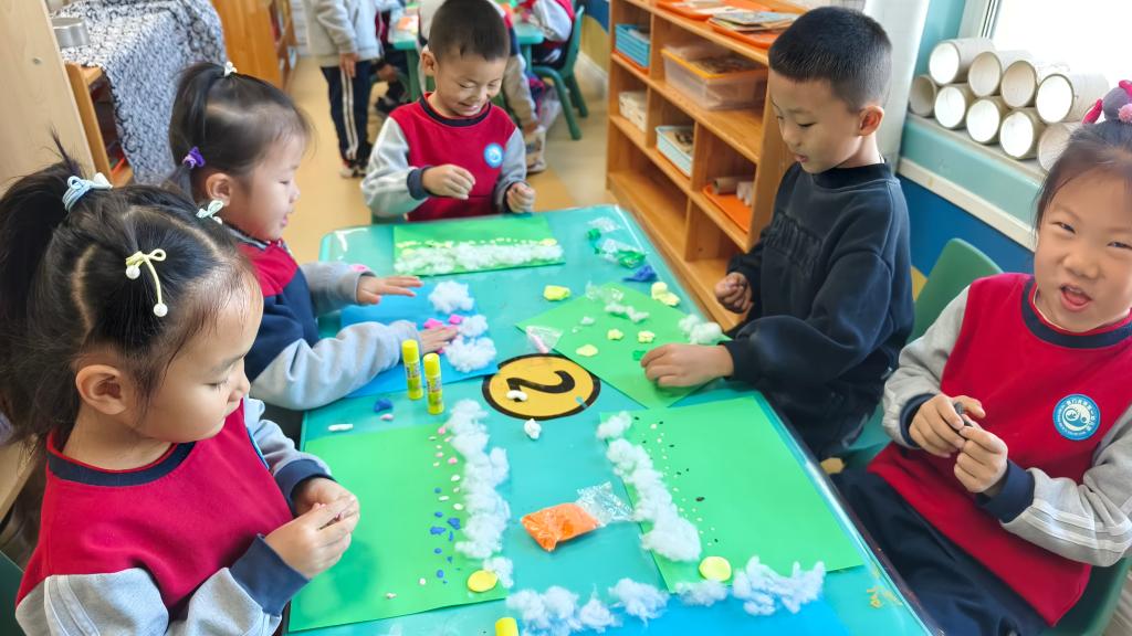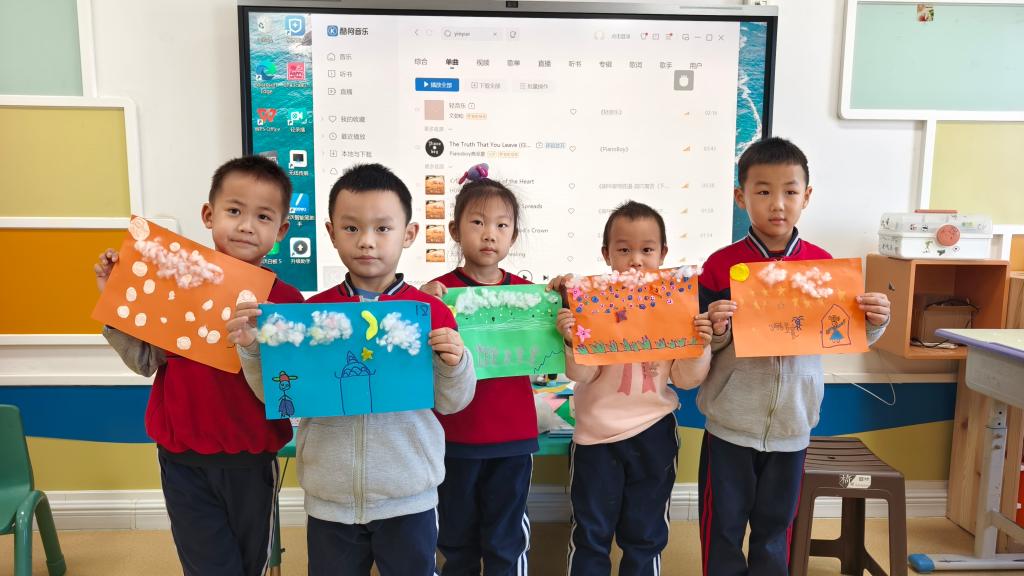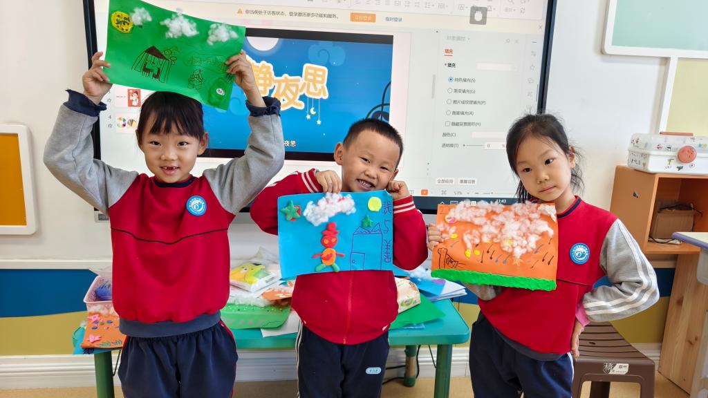 史正兵老师则以经典古诗《静夜思》为教学线索,开展了富有文化底蕴的手工拼贴画课程。孩子们充分发挥创造力,有的用蓝色彩纸拼贴浩瀚夜空,有的用黄色彩纸剪出弯弯明月,有的用棕色彩纸勾勒故乡小屋,在动手实践中加深了对传统文化的理解,也锻炼了动手能力与审美素养。