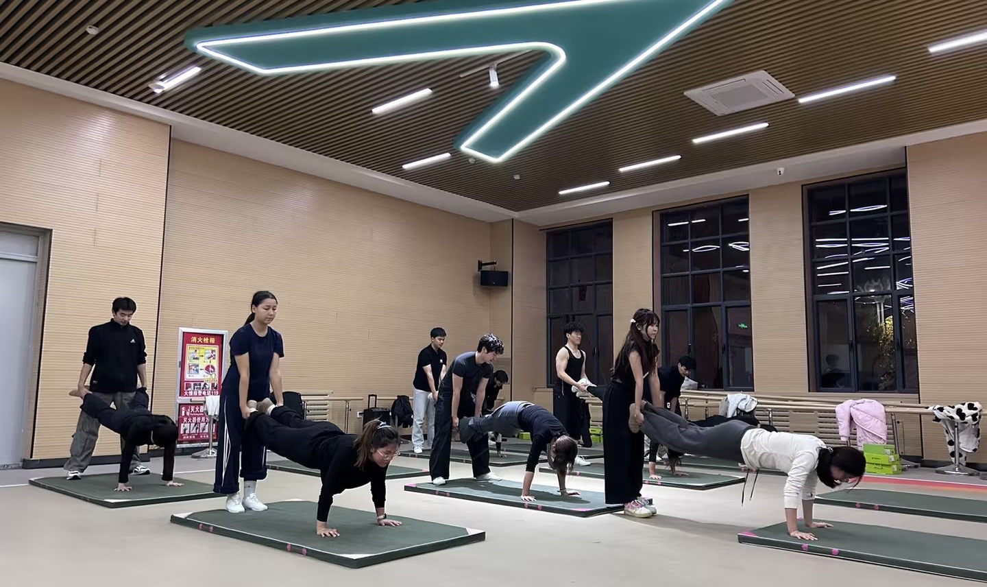 每晚19时,训练准时启动。节奏明快的音乐回荡在馆内,队员们依次完成跳跃、托举、旋转、造型等动作,每一个细节都经过反复打磨,力求精准完美。训练场边,替换下来的训练服早已被汗水浸透;不少队员的膝盖、手肘上贴着防护胶布,带着明显淤青——这是她们无数次跪地、翻滚留下的“成长勋章”。