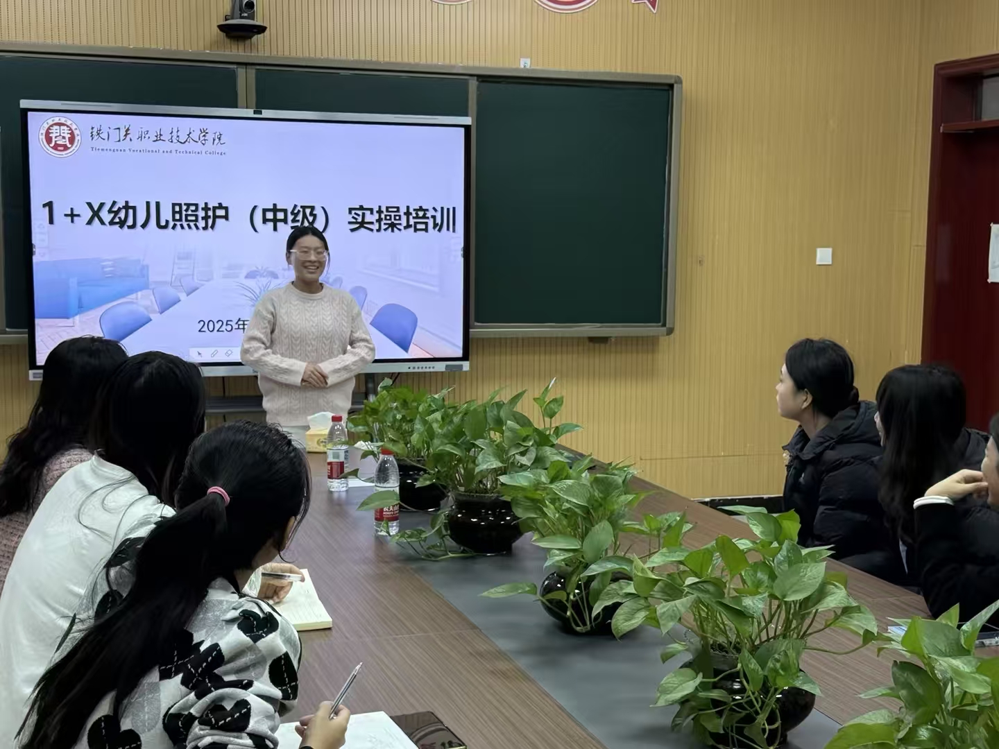 培训伊始,杨永芬老师围绕幼儿急救、营养膳食、区域创设等岗位核心技能展开系统讲解,结合幼儿照护行业规范与教学实际,将理论知识与实操要点有机融合,为参训师生构建了扎实的知识体系,为后续等级考试筑牢基础。