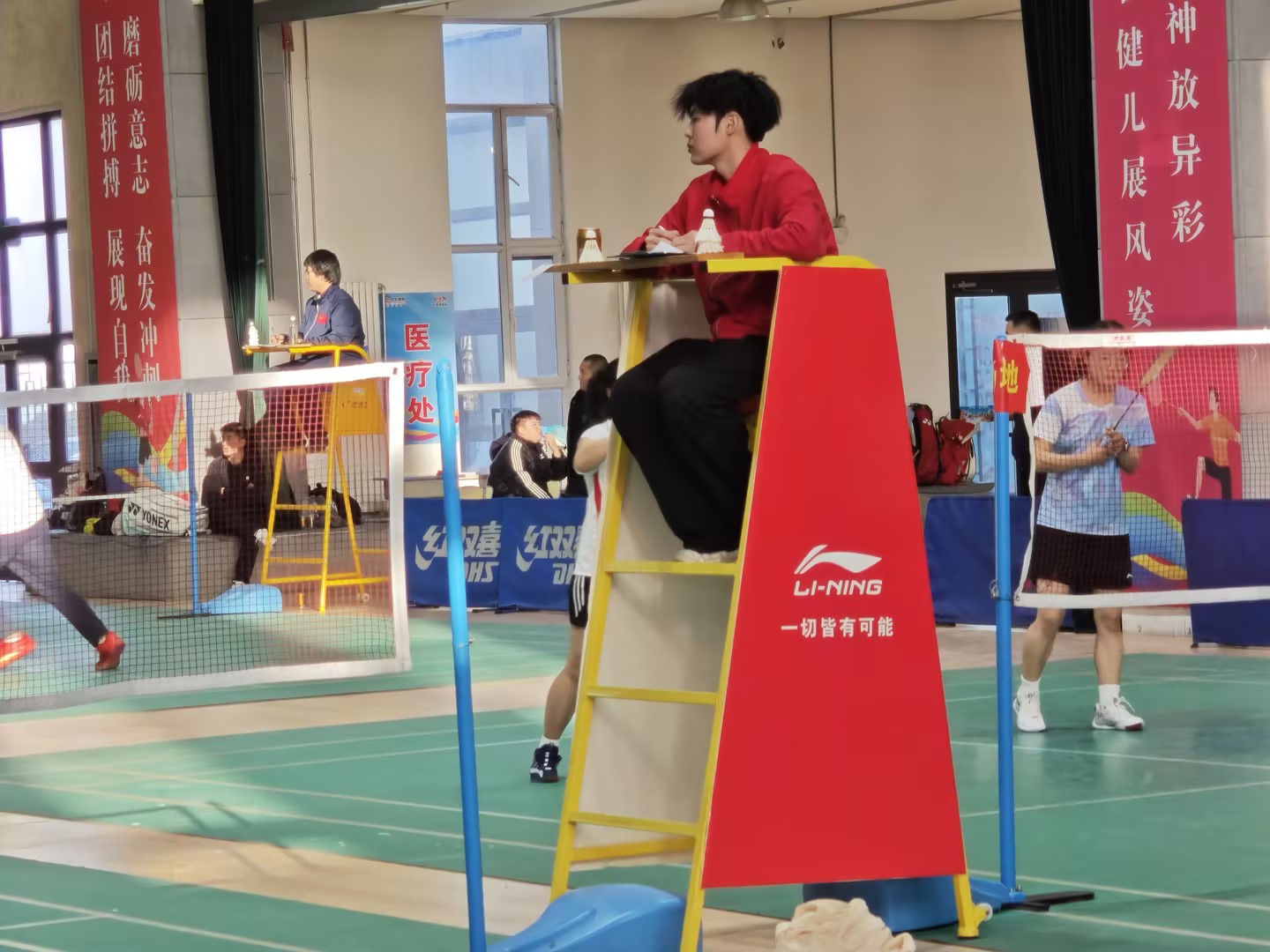 应赛事主办方商请,我校从羽毛球社团和校队中选派20名学生和3名体育教师组成裁判团队。比赛期间,师生们充分发挥特长,以严谨细致的工作态度和公平公正的执裁原则,确保了赛事中各项比赛的顺利进行,出色的组织协调能力和专业的裁判水准,展现了学院师生良好的精神风貌和扎实的体育素养。