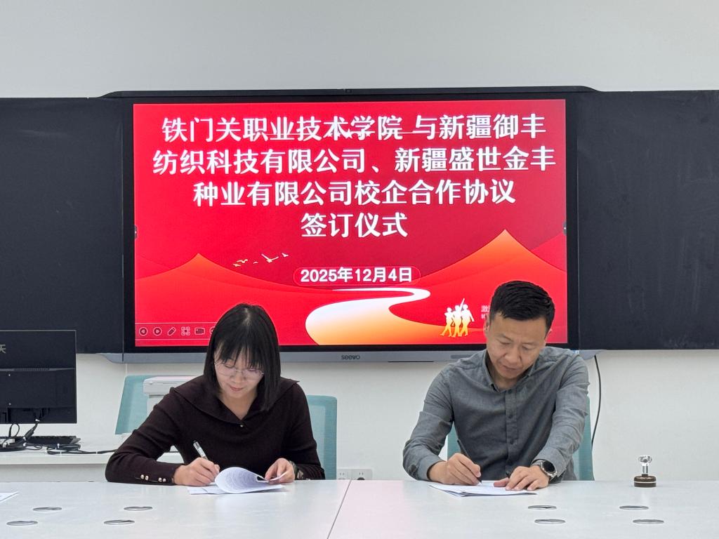 12月4日,sunbet申搏官方网站现代农业学院与新疆御丰纺织科技有限公司、新疆盛世金丰种业有限公司校企合作签约仪式在学院精技楼举行。现代农业学院负责人、教师代表与企业方代表共同出席活动,标志着校方在推动职业教育与区域产业协同发展方面迈出新的坚实步伐。