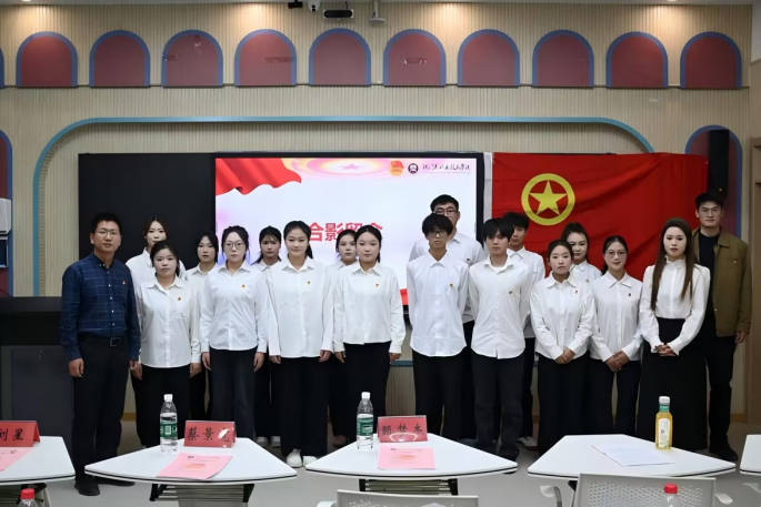学院团委负责人叮嘱新团员“团徽戴在胸前,更要记在心里”,在日常学习生活中践行团员责任;学院党支部负责人提出三点期望,勉励青年学子坚定信念、勤学本领、勇担使命,成长为新时代合格建设者。仪式在激昂的《光荣啊,中国共青团》歌声中落幕,全体人员合影留念,定格这一承载信仰与希望的时刻。