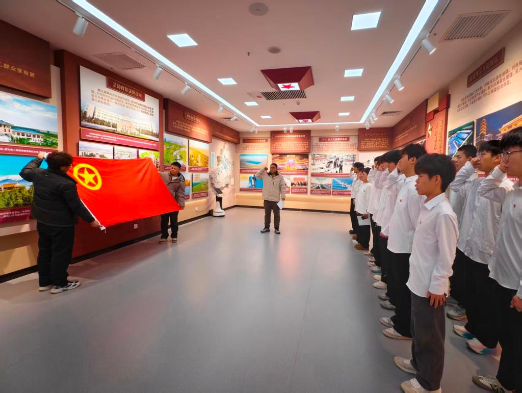 庄重的入团仪式在纪念馆举行。团总支书记宣读新团员名单后,20名青年学生面向鲜红团旗庄严宣誓。新团员代表24级汽车技术服务与营销专业学生吴紫颖激动表示:“站在先辈战斗过的土地上,我更深刻领悟到‘团员’二字的分量。未来要将智能网联技术研发作为战场,为边疆交通现代化贡献青春力量!”仪式特别设置“红色徽章传递”环节,党员及教师代表为每名新团员佩戴团徽,寓意革命精神的代际传承。