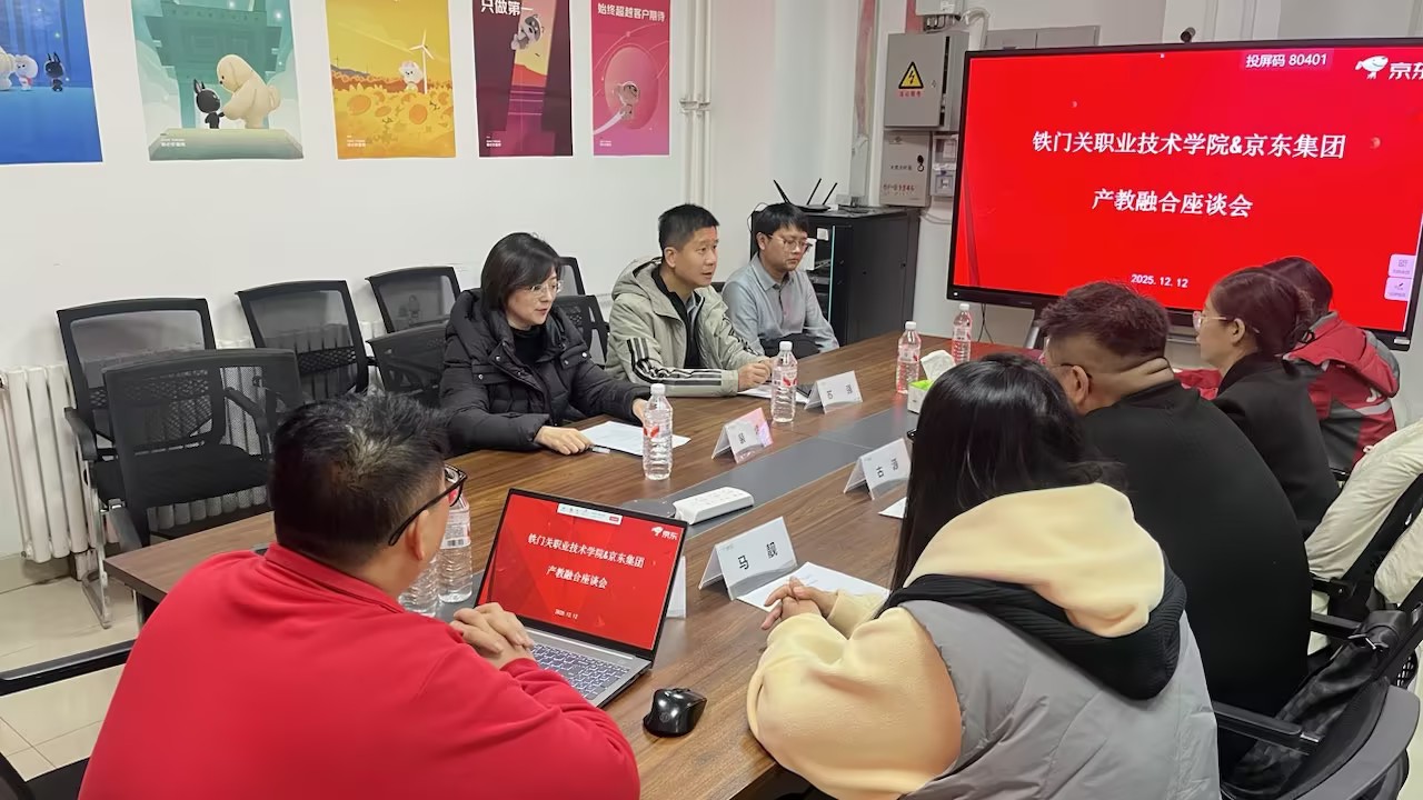 座谈会上,苏强介绍了学院总体发展、办学定位及产教融合规划,财经商贸学院负责人系统介绍了该院专业特色、人才培养模式及毕业生情况。京东集团代表详细说明了企业业务布局、岗位需求及人才发展体系,重点围绕物流管理、网络直播与运营、电子商务等领域提出了具体合作意向。