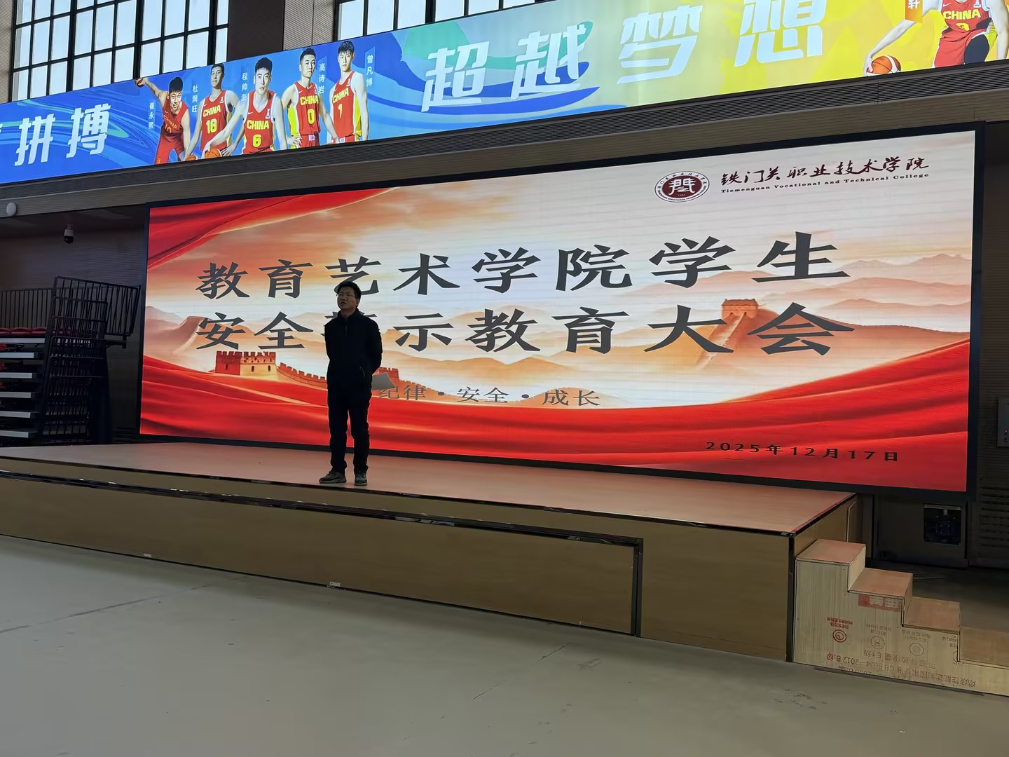 为深入贯彻学院强化校园安全工作的部署要求,筑牢学生安全思想防线,12月17日,sunbet申搏官方网站教育艺术学院于体育馆开展“青春无界,底线有疆”主题安全警示教育大会。