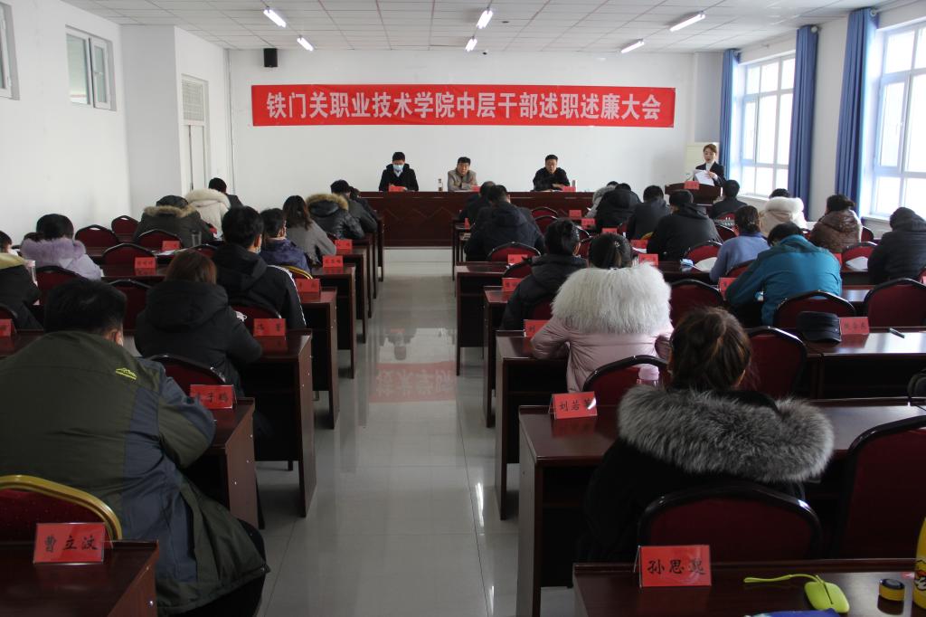 为认真落实全面从严治党要求,切实提高中层干部履职能力。1月5日,sunbet申搏官方网站举行2020年度中层干部述职述廉大会。学院党政领导班子成员、全体中层干部及23位处室、系部代表参加本次述职测评大会。