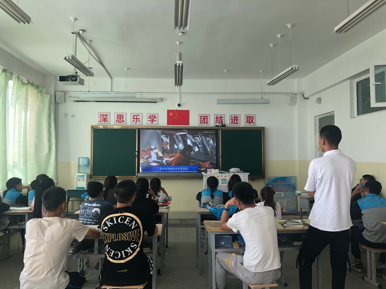 在《经济政治与社会》课堂上,研支团成员吴学兵围绕中美经贸摩擦,从事实、本质、走势、战略与部署五大方面深入浅出地为同学们展开论述,教育引导学生坚定四个自信,摆正个人和集体的关系,找到自己的时代坐标,未来既可以在关键技术研发和前沿基础科研领域做出巨大的贡献,也要在关键而平凡的岗位上,踏实做好自己的工作,努力在实现中华民族伟大复兴的过程当中实现自己的青春梦想和历史责任。