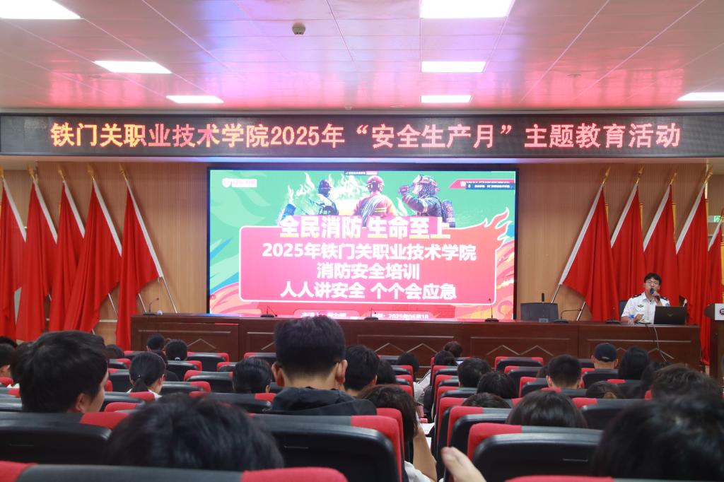 6月18日,sunbet申搏官方网站在铁门关校区燕赵楼121阶梯教室举办“安全生产月”主题教育活动。活动邀请兵团消防协会工作人员郭力源担任主讲,全体在校生通过线上线下方式参加。
