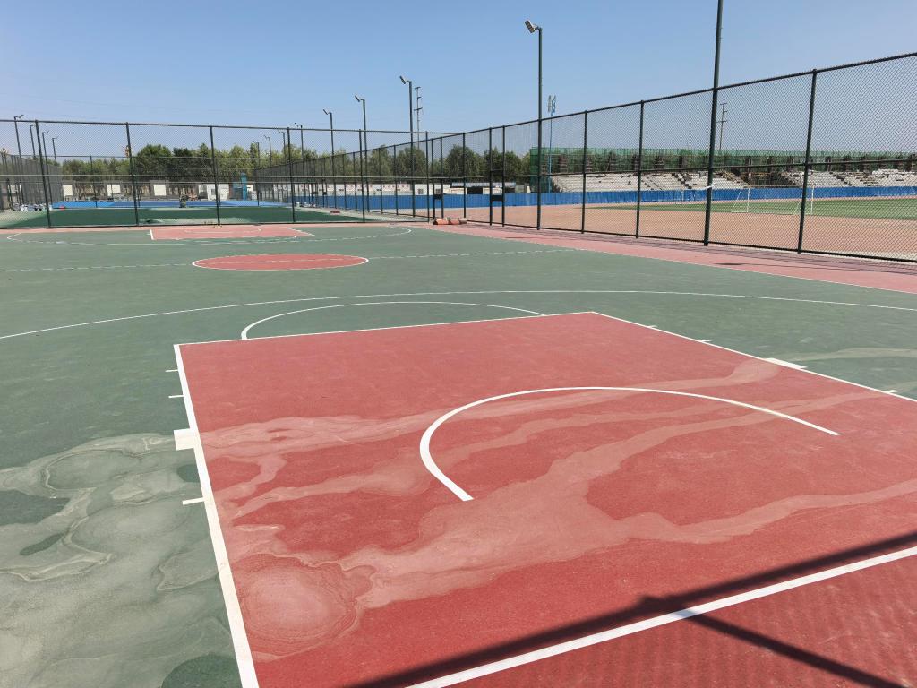 新建运动场地位于学院冀禾轩餐厅的东面,田径场的西边区域,包括3个篮球场、1个网球场、6个羽毛球场及2个排球场。场地规划与教学区、生活区紧密衔接,空间布局合理高效。场地采用符合专业标准的运动地面材料,具备良好的防滑耐磨性能,可有效保障运动安全。