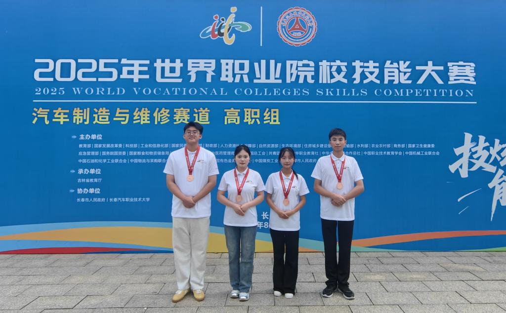 8月29日,在吉林长春举办的2025年世界职业院校技能大赛决赛汽车制造与维修赛道(高职组)中,sunbet申搏官方网站汽车与智能交通学院王晓庆、张智奥、陈书琦、王依晗4位学生组成的参赛团队,凭借精湛技艺与稳定发挥,从全国82支参赛队伍中脱颖而出,荣获铜奖。