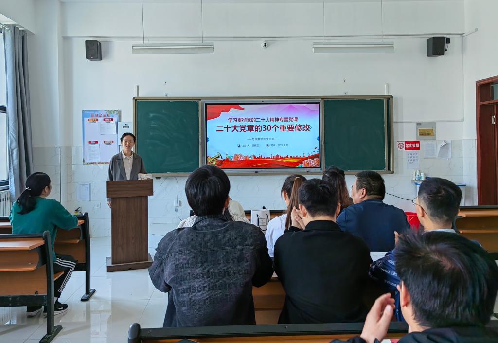 结合思政教学部的学科特点,党支部还邀请到师市党委党校教师为全体党员上了一堂《二十大党章的30个重要修改》专题党课。