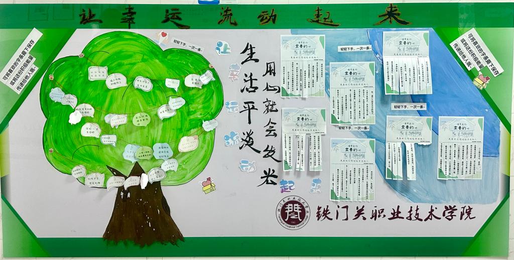 12月16日,马克思主义学院在燕赵楼心理沙盘室举办的“幸运传递”活动吸引了众多学生参与。活动现场,一面贴满期末正能量语句与积极自我关怀语的展墙尤为引人注目。来自各二级分院的400余名同学纷纷撕下自己喜欢的字条进行收藏,以此激励自我,并将这份积极能量传递给同学,共同营造了一个积极向上、充满活力的学习氛围。