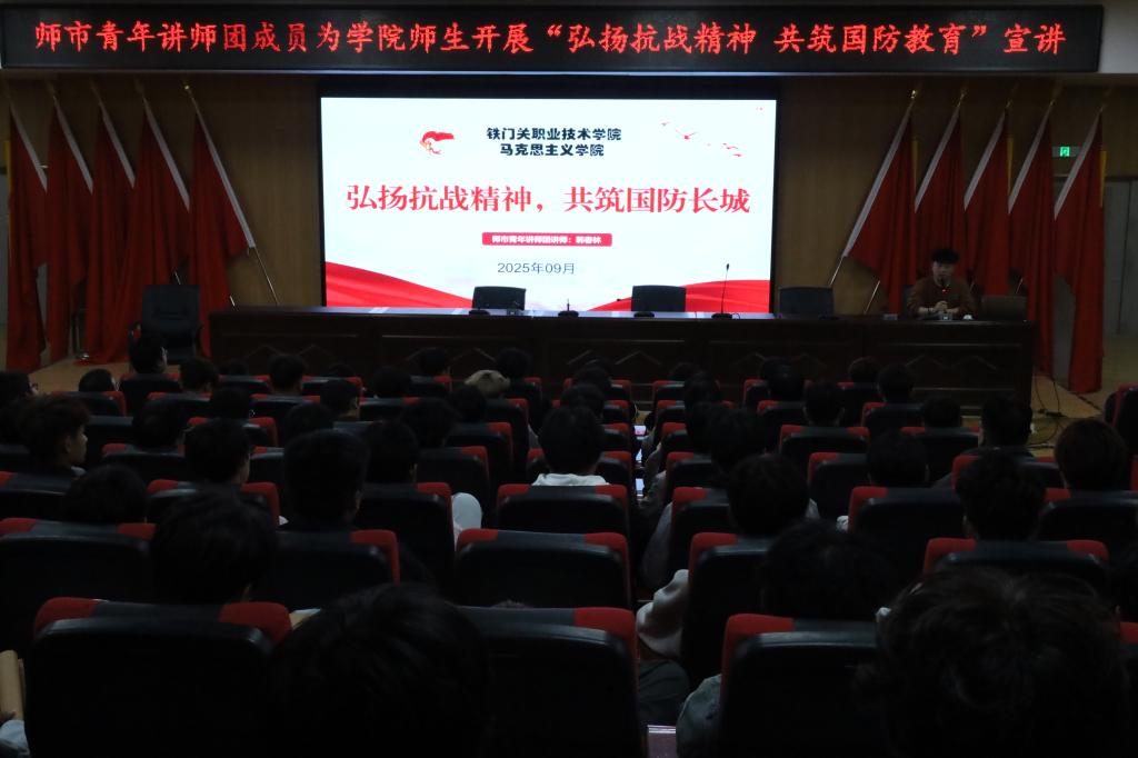 宣讲以“抗战精神的精神丰碑意义”为切入点,结合历史图片与文献资料,回顾“九一八事变”“七七事变”“百团大战”等重要历史事件,系统阐释了以爱国情怀、民族气节、英雄气概、必胜信念为核心的抗战精神内涵,引导师生深刻认识和平的来之不易。