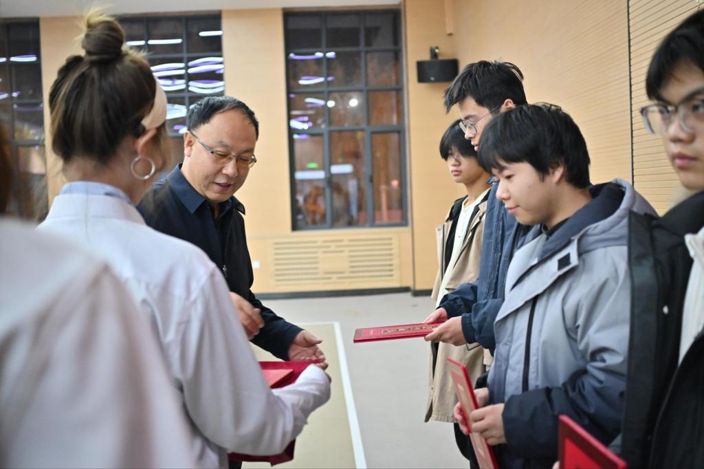 经过激烈角逐,冠、亚、季军与2025-2026年度“校园十佳好手”脱颖而出。其中,信息工程学院25级计算机网络技术3班的姚好好同学凭借七胜二和的不败战绩,斩获本届冠军。随后,学院分管领导为本次比赛获奖选手颁发奖状并作总结讲话。