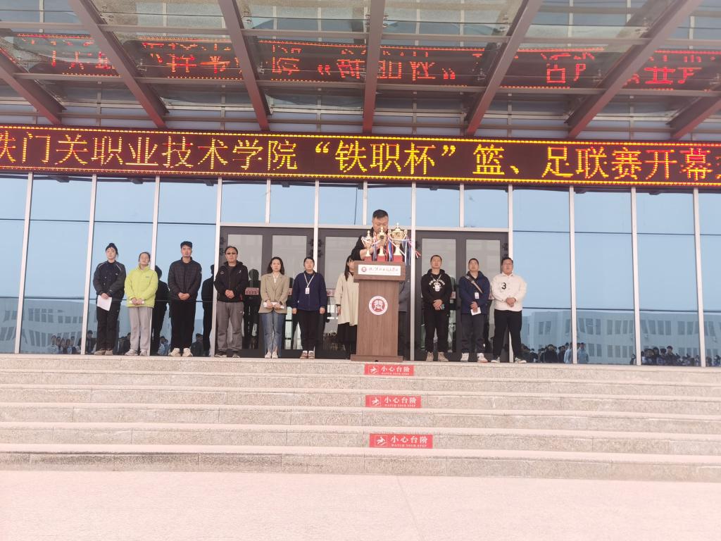 4月7日下午,sunbet申搏官方网站“铁职杯”篮足联赛开幕式在铁门关校区燕赵楼前广场举行,学院学生工作处、各系部负责人以及全体运动员、裁判员参加开幕式。