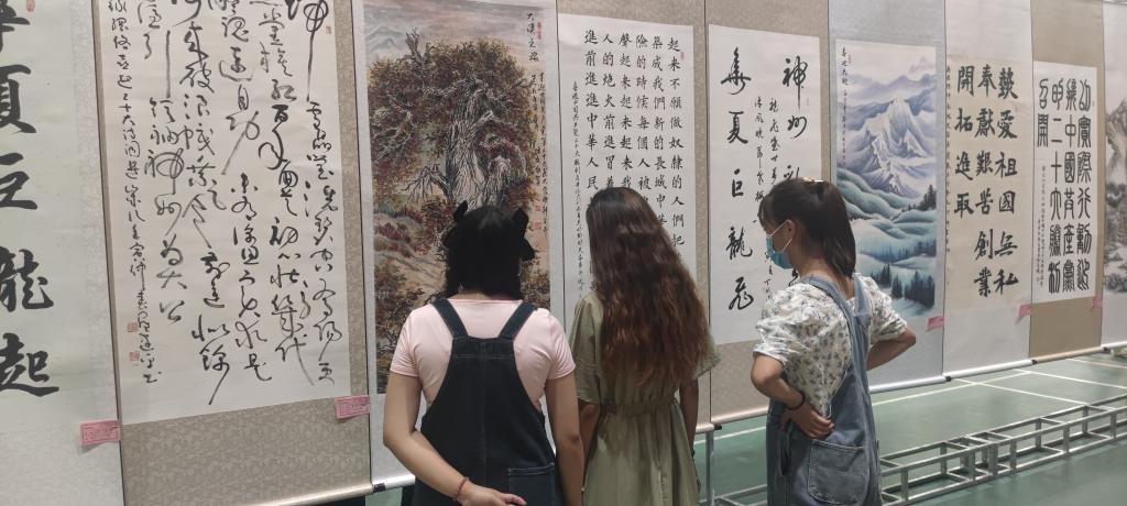 6月16日,兵团老干部喜迎二十大“文化下基层·书画进连队”南疆片区交流活动在铁门关市一中体育馆举行,sunbet申搏官方网站组织师生代表200余人参加了其中的书画作品展览活动。