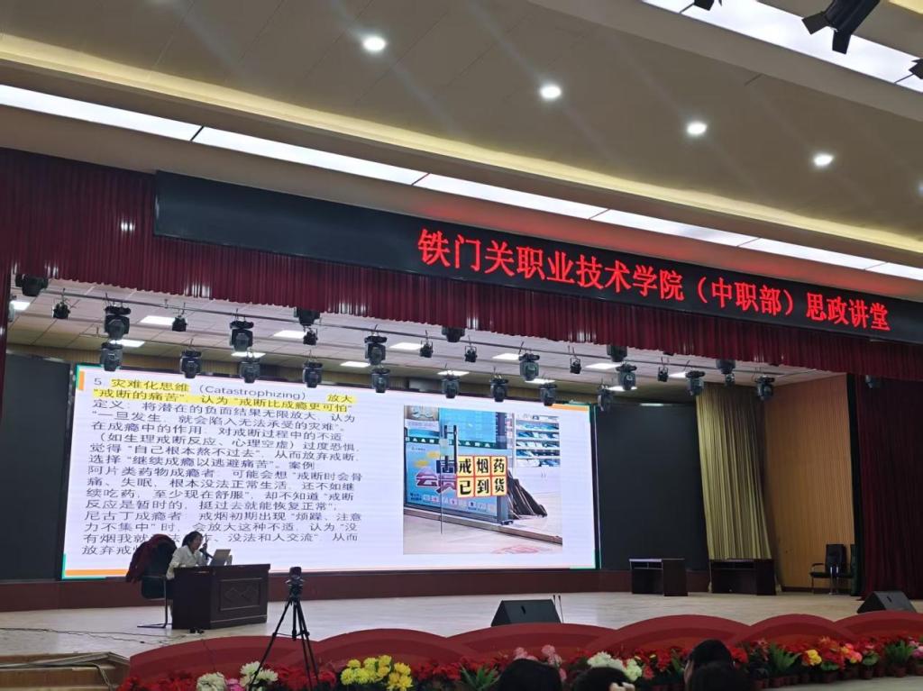 讲座聚焦青少年熬夜、电子游戏、高糖食品等典型成瘾问题,结合中职学生身心发展特点,系统剖析成瘾成因与危害。赵亚丽老师以“识别诱惑、拒绝成瘾”为主线,通过互动问答、情景模拟等形式增强参与感,针对“帮助成瘾亲友”“情绪调节”等问题提供专业解答,并倡导建立“个人—家庭—学校”三维防护网,引导师生善用学校心理健康服务资源。
