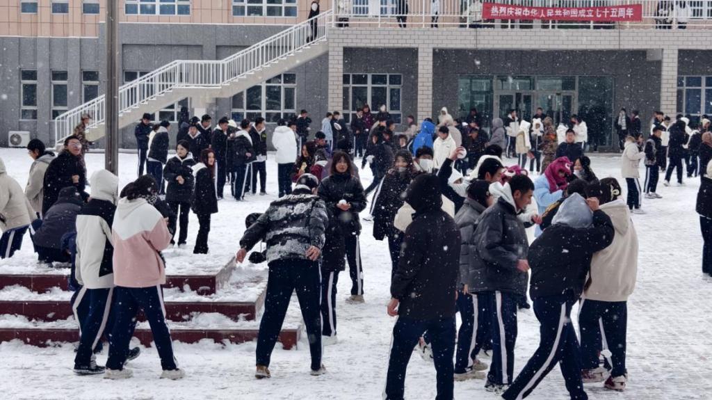 学生们手持铲子和扫把,有序地清理着校园的积雪,老师们也积极踊跃地加入到铲雪队伍中。尽管天气寒冷,但大家的脸上都洋溢着热情和活力,挥舞着手中的铁锹和扫帚,相互配合,共同劳动,一派热火朝天的景象。秉持着在玩中干、干中玩的理念,经过大家的共同努力,校园的主干道、教学区域出入口道路和生活区主要道路都恢复了干净整洁。扫雪结束后,校园里出现了很多各具特色的雪人,为校园增添了一抹明媚。
