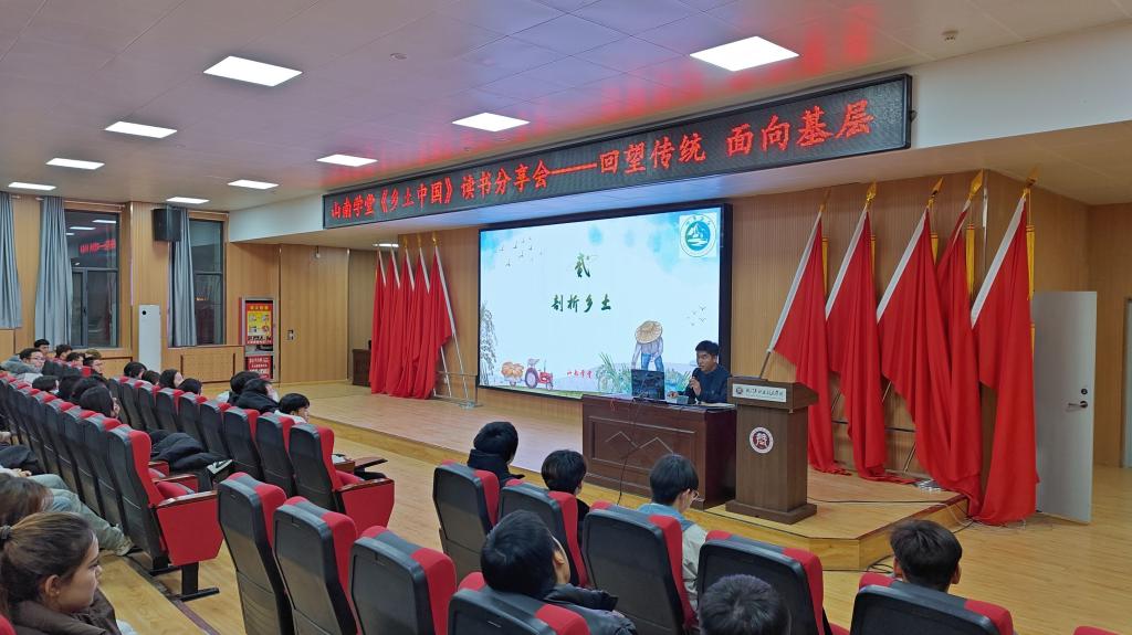 据悉,2023年度山南学堂共开展讲座4期,教师指导学生先后品读了《乡村经济》《乡土中国》《乡建笔记》等乡村题材著作5部,通过指导老师批改、成员互批读后感及书评,组织交流会、茶话会等形式交流读书心得,调动学生的学习积极性。通过活动,带领学生回望乡土、详识传统,增强学科素养,提高专业能力,为学生下基层服务提供理论支持,助力乡村振兴。