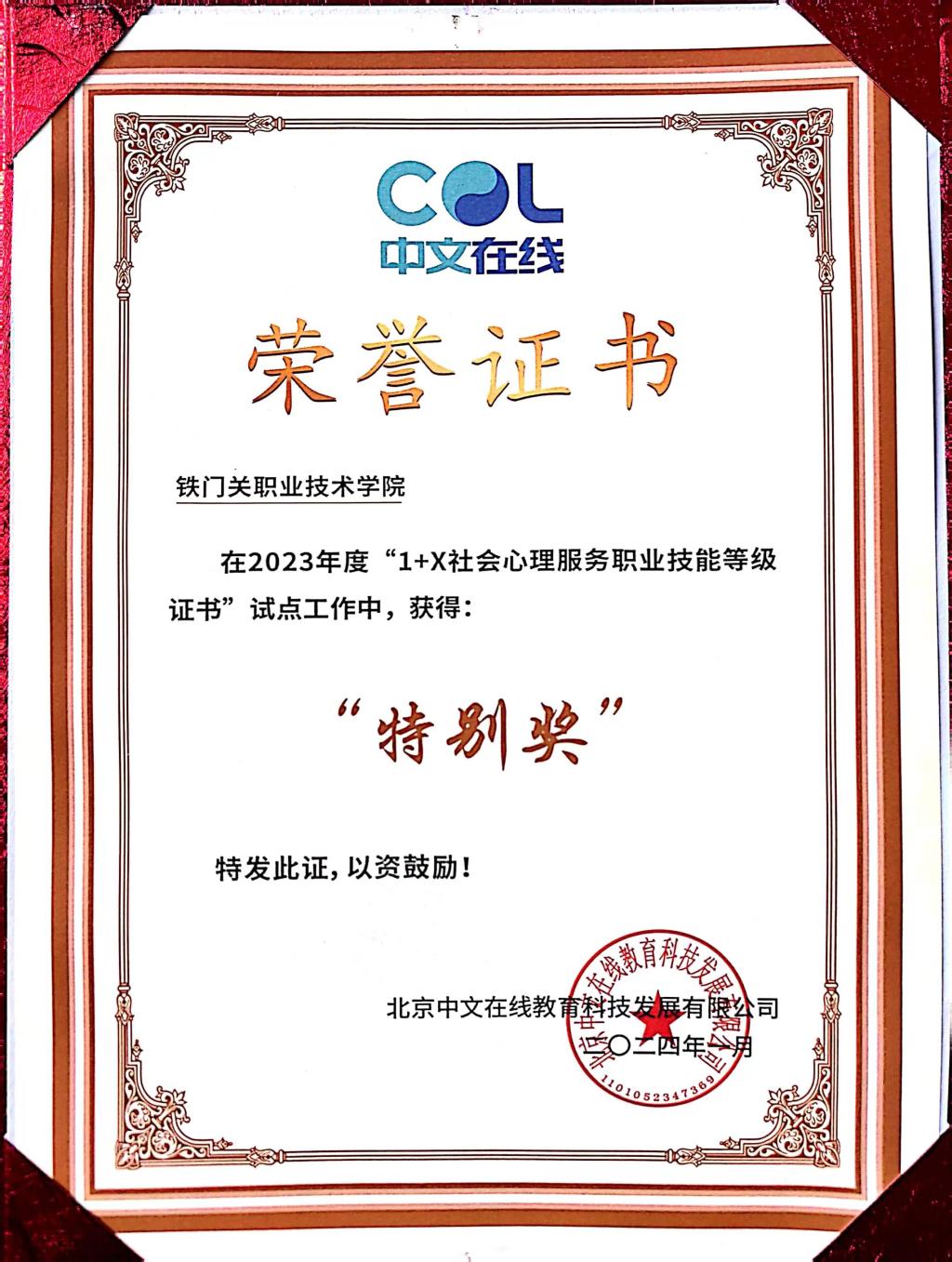 近日,社会心理服务职业技能等级证书2023年度试点院校评优表彰名单已公示,其中sunbet申搏官方网站荣获“特别奖”。