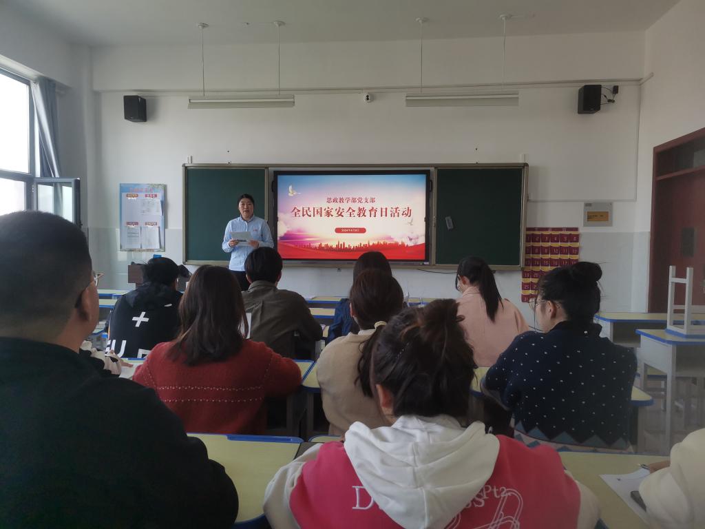 4月14日,思政教学部开展以“全民国家安全教育日”主题的团日活动,思政教学部全体团员参加。讲座上,韩春林老师通过音视频、趣味问答等形式,强调国家安全不仅是军事安全,还包括政治、经济、文化、网络、信息等多个方面,结合相关案例,让同学们更加明白了维护国家安全的重要意义并意识到肩负的责任。
