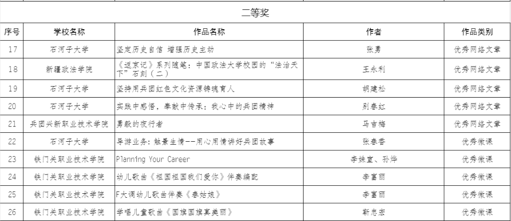 2023年兵团高校网络教育优秀作品推选展示活动拟获奖名单(部分)