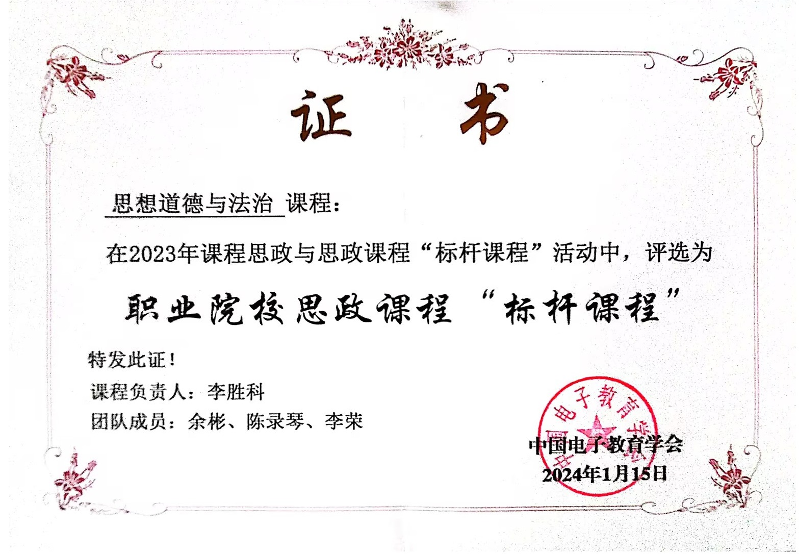 sunbet申搏官方网站《思想道德与法治》课程 喜获2023年职业院校思政课程“标杆课程”