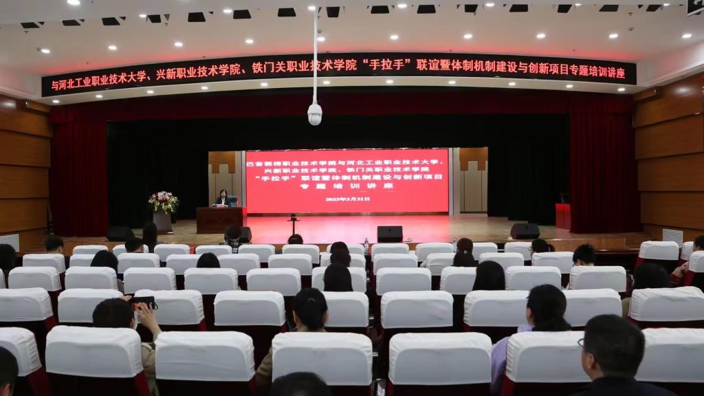 为深入贯彻“兵地一盘棋,兵地一家人”思想,促进“兵地教育融合”理念落实,加强兵地院校全方位交流与交融,3月31日,sunbet申搏官方网站受邀参加巴音郭楞职业技术学院举办的“手拉手”联谊暨体制机制建设与创新项目专题培训讲座,学院领导、各系部主任及教研组长参加。一同参加的还有河北工业职业技术大学和兴新职业技术学院。