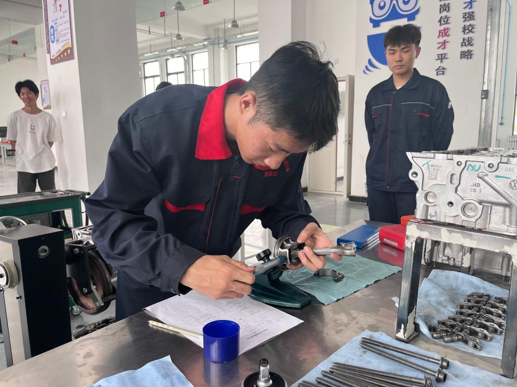 在发动机拆装环节,学生身着专业工作服,一丝不苟地进行着每一步操作。他们熟练地拆下发动机的各个部件,并用专业的工具进行清洗和检查。在模拟话术中,他们向现场观众介绍发动机的结构和工作原理,讲解拆装过程中的注意事项和技巧。