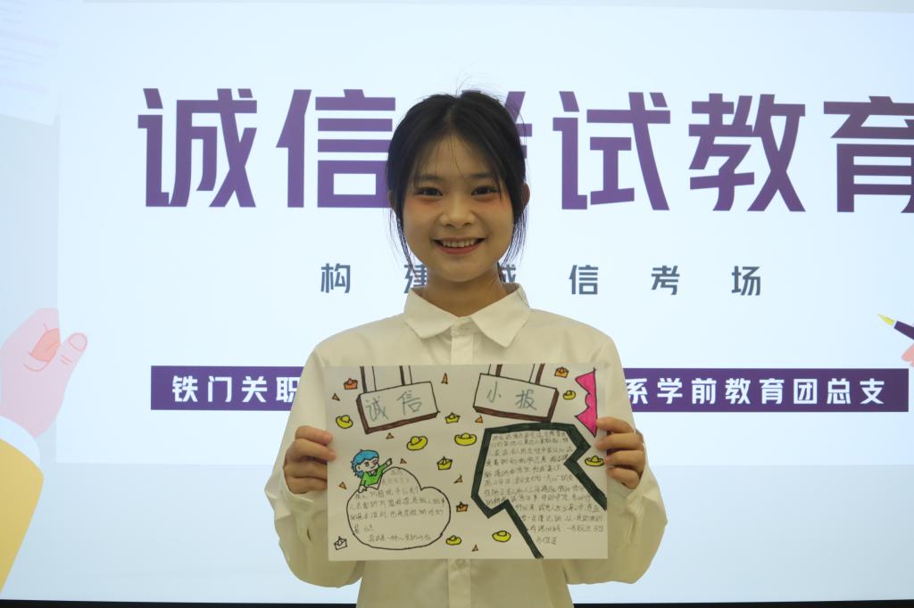 活动最后,团员们精心制作了诚信考试手抄报,充分发挥出创意和才华,用手中的画笔和文字,表达了对诚信考试的深刻理解和坚定支持。他们通过搜集资料、精心设计版面,将诚信考试的重要性、作弊的危害以及如何做到诚信考试等内容生动形象地展现出来。一张张手抄报主题鲜明、内容丰富、色彩鲜艳。有的以“诚信是金”为主题,用金色的画笔描绘出诚信的光辉;有的以“拒绝作弊,从我做起”为口号,呼吁大家坚守诚信底线;还有的同学通过讲述古代名人的诚信故事,传递诚信的力量。