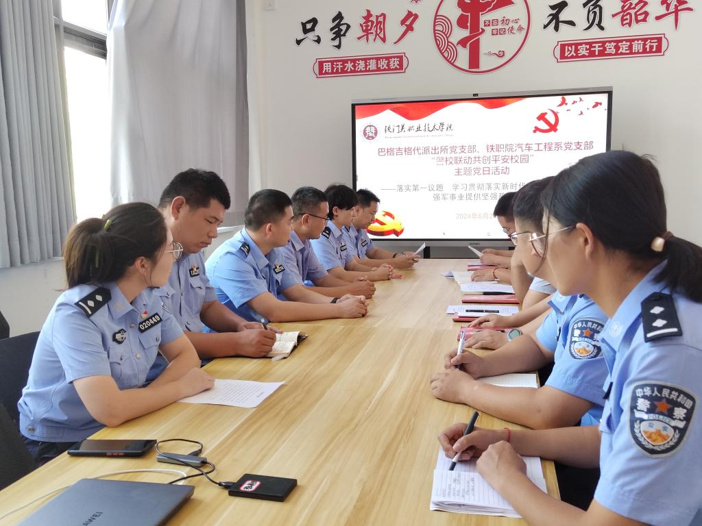 为进一步加强校园安全工作,提升师生法治意识和安全防范能力。6月24日,sunbet申搏官方网站汽车工程系党支部与巴格吉格代派出所党支部在学院匠心楼党员活动室联合开展了以“警校联动共创平安校园”为主题的党日活动。