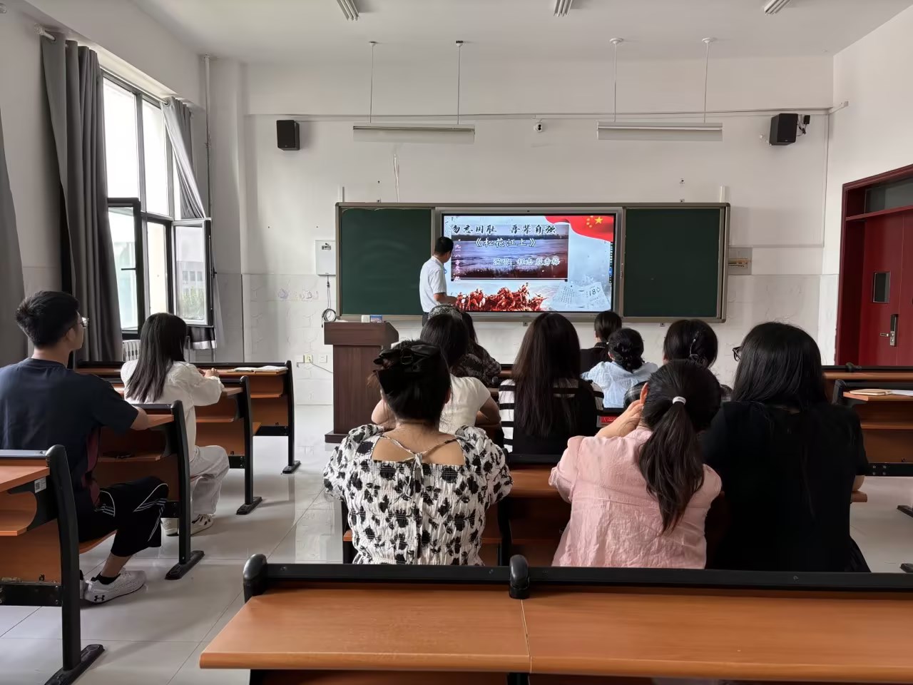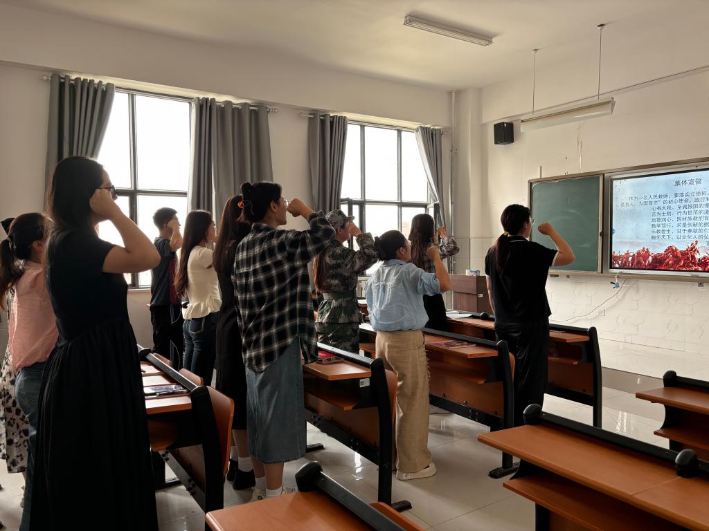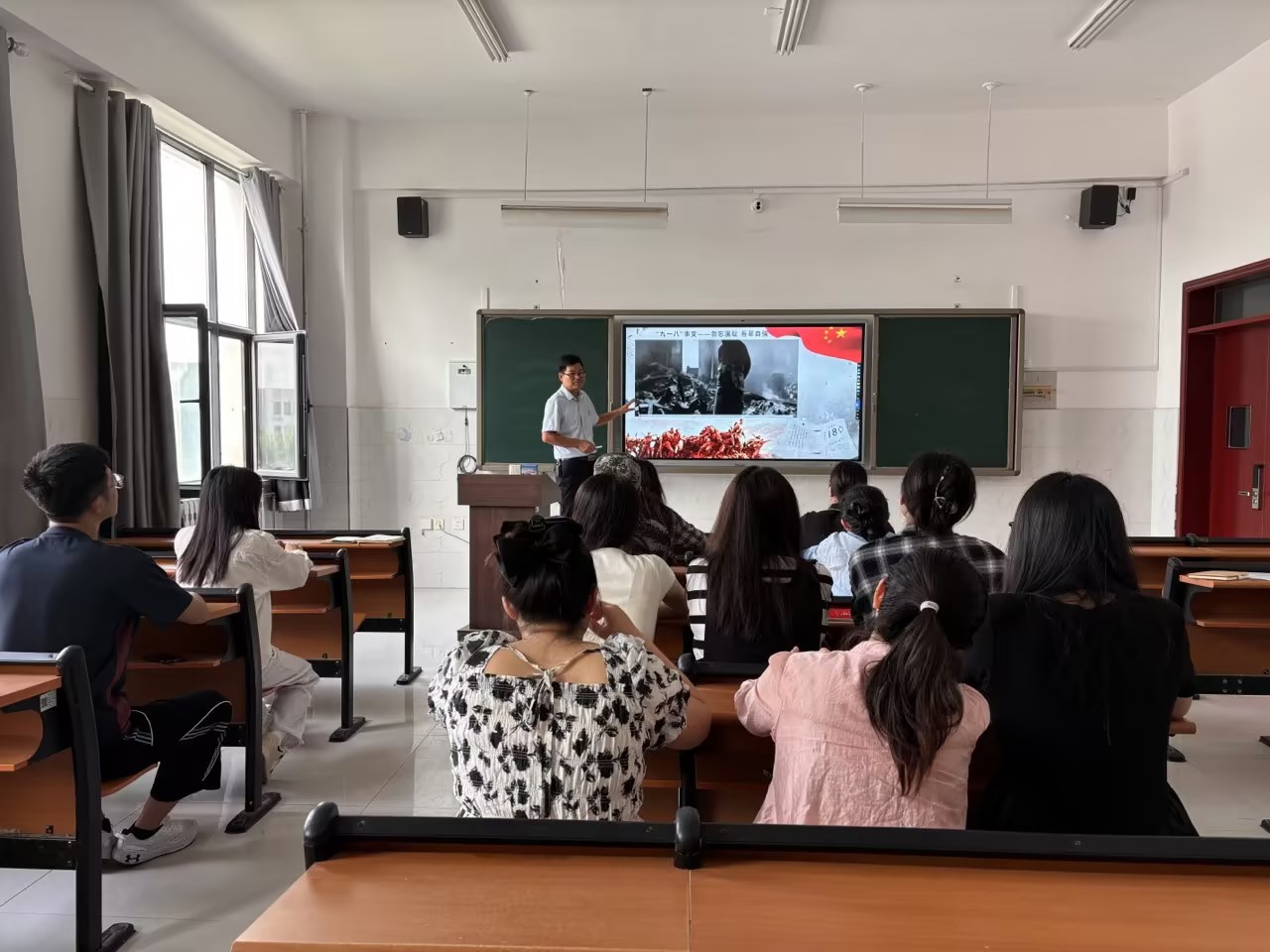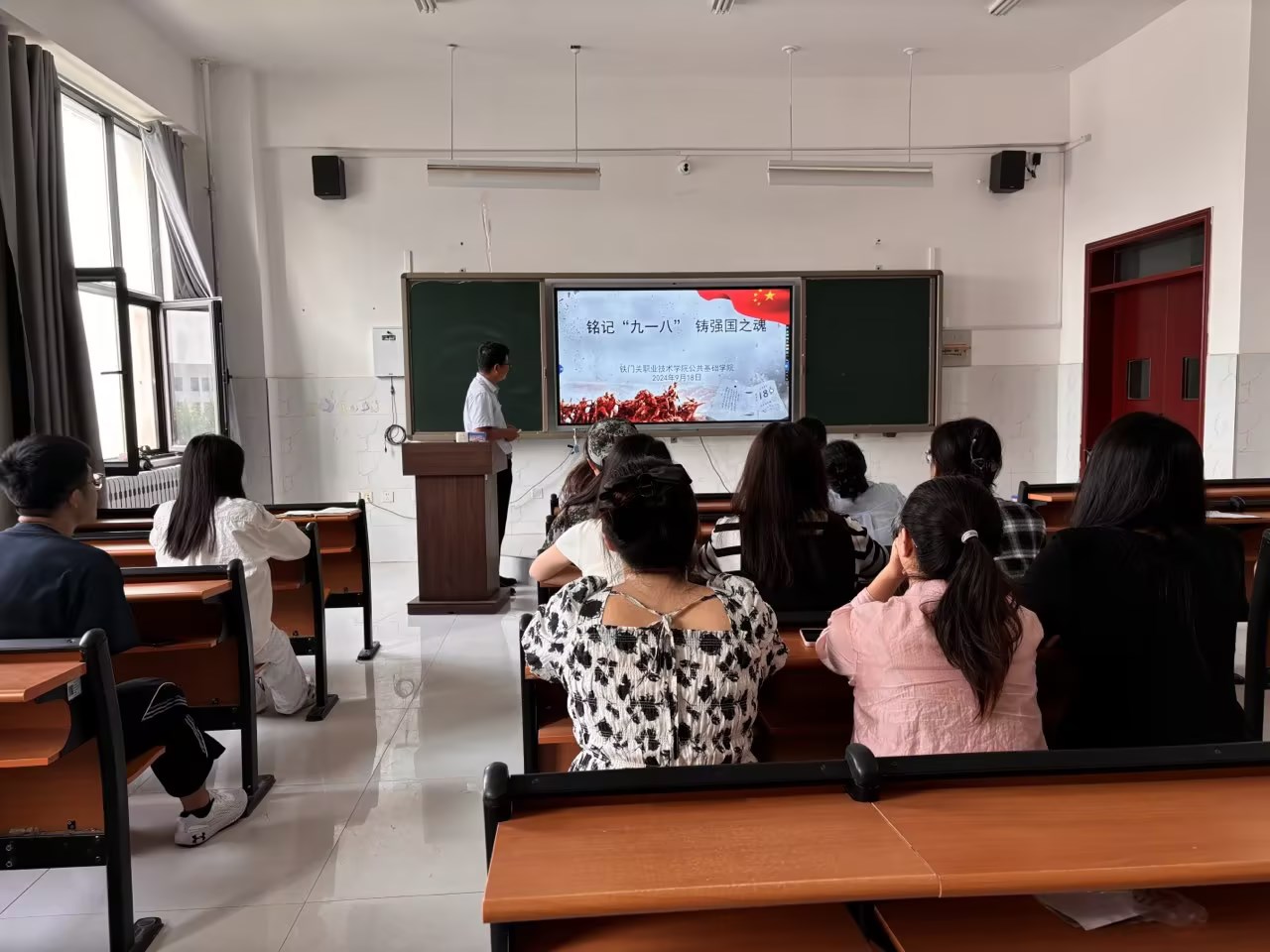 在活动中,全体教师回顾“九一八”事变爆发的历史过程,观看了教育影片《松花江上》,倾听杨靖宇、赵一曼先烈的革命故事,朗诵了诗词《铭记历史 砥砺前行》,全体教师进行宣誓。通过此次活动,教师们表达对革命先烈的哀悼,铭记历史,勿忘国耻,激发全体教师砥砺前行、奋发有为的精神动力,为教育强国建设培养更加优秀的人才。