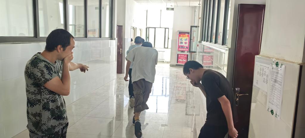 随着一阵急促的警报声演练正式拉开序幕。演练模拟了匠心楼三楼突发火灾的情景,警报声、呼喊声交织在一起,营造出逼真的火场氛围。“大家弯腰低姿,用湿毛巾捂住口鼻,跟紧我,向最近的安全出口撤离!”在班主任和辅导员的指挥下,学生们迅速集合并按照预定路线有序撤离,学生在逃生过程中不忘相互提醒、帮助行动不便的同学。安全引导员们身着反光背心,手持应急手电筒,在关键路口指引师生方向,确保逃生路径畅通无阻。在各位工作人员和师生的协同合作下,200多名师生在2分钟内安全、有序的撤离火灾现场。