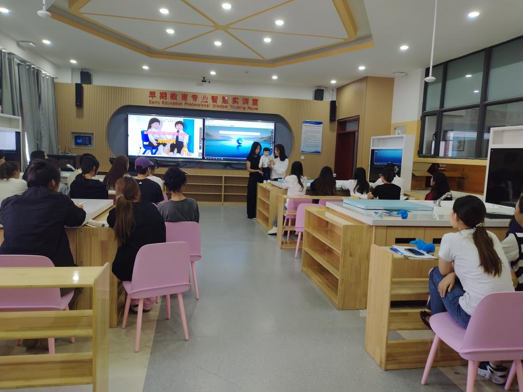 为筹备2024一带一路暨金砖国家技能发展与技术创新大赛第二届幼儿照护职业技能赛-高校选拔赛项,9月26日,sunbet申搏官方网站教育艺术学院联合北京幼乐美教育科技有限公司展开了线上智能娃娃操作培训,为使学生更好地掌握操作方法,学前教育教研室教师积极组织备赛学生于德艺楼208早期教育智慧实训室进行线下的智能娃娃操作实践。