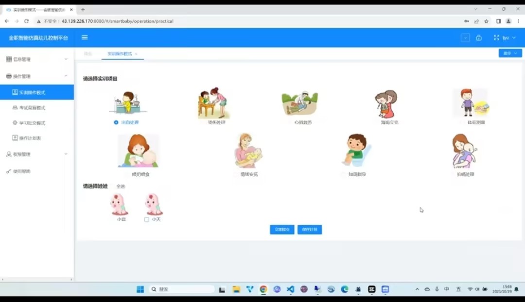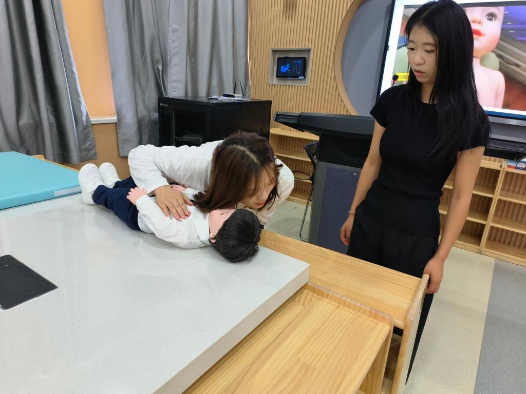 此次培训、实践的核心为幼儿照护赛项中智能娃娃的操作使用方法,智能娃娃专供幼儿照护专业实践操作训练使用,具备心肺复苏(按压、吹气)处理、海姆立克处理、模拟喂奶喂食、拟换尿片等12种功能。
