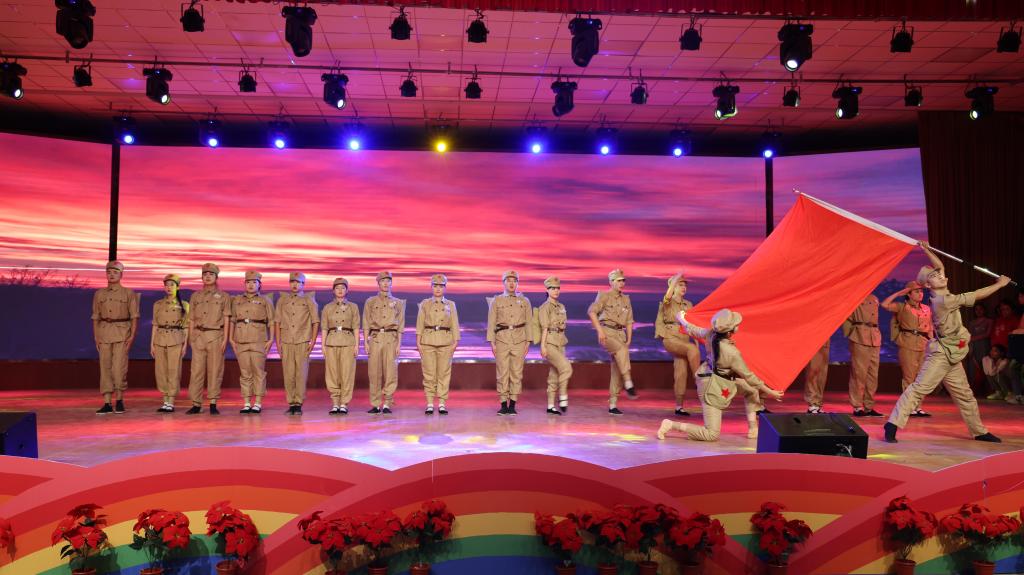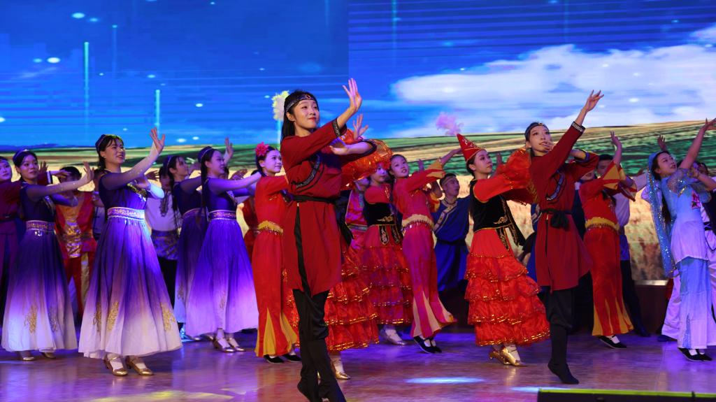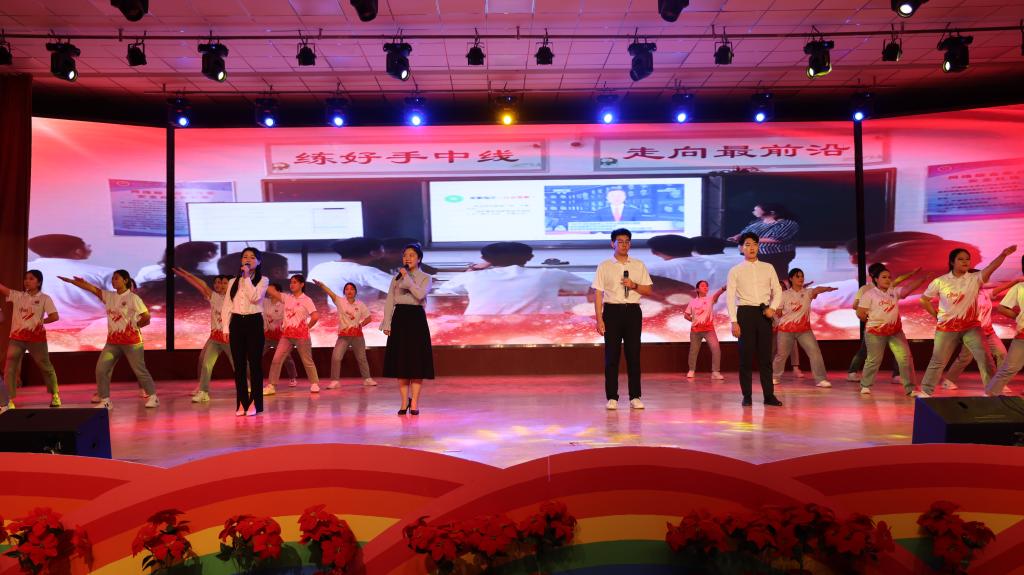 2024 年 9 月 25日,为庆祝新疆生产建设兵团成立七十周年,一场精彩纷呈的原创舞台剧在sunbet申搏官方网站库尔勒校区演播厅盛大上演。此次文艺演出集音乐、舞蹈、话剧等多种艺术形式于一体,以学院学子的校园生活为创作背景,共分为“开学”“校园”“记忆”“誓言”四个篇章,为中职部师生带来了一场震撼心灵的视听盛宴。