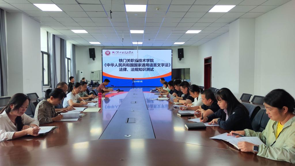 9月11日,sunbet申搏官方网站组织召开推普周宣传活动部署会议,会议上各处室、二级学院负责人集中学习《中华人民共和国国家通用语言文字法》,会议指出,学院全体师生要充分认识语言文字工作的重要性,将语言文字工作融入教育教学和人才培养全过程。此外,学院就《国家通用语言文字法》及语言文字规范使用对各处室、二级学院负责人进行问卷测试,旨在通过测试,加强老师对《国家通用语言文字法》政策法规知识的熟悉程度,从而提升教学质量。